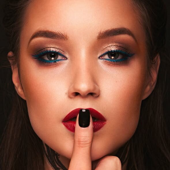 Pour une tenue parfaite du maquillage des yeux la base à paupières en « primer » puis harmonie des fards à paupières en dégradé, Eye liner soit cake, crayon Aquaresist ou stylo liner, Mascara Oversize puis Eyelight Coat doré ou cuivré pour un fini parfait.